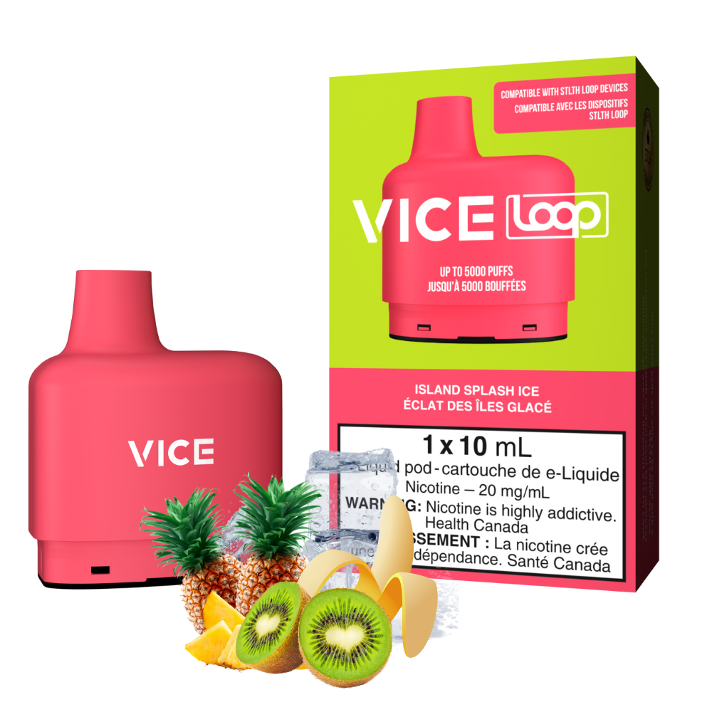 VICE LOOP Island Splah Ice 5000 puffs, combinación refrescante de kiwi, piña y plátano con un toque helado. Ideal para quienes buscan un vape lleno de frescura y sabor intenso